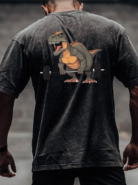WEIGHTLIFTING DINOSAUR back printed Washed Gym Shirt