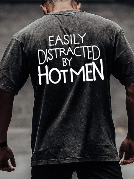 EASILY DISTRACTED HOTMEN back printed Washed Gym Shirt