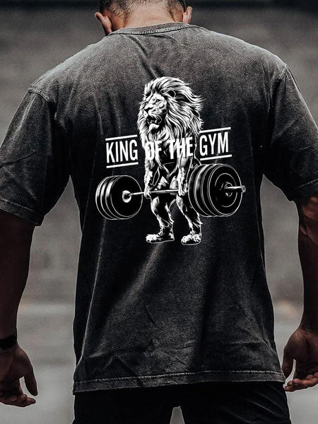 barbell Weightlifting Elephant back printed Washed Gym Shirt