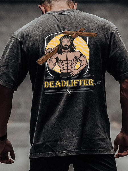 JESUS DEADLIFTER back printed Washed Gym Shirt