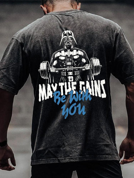 MAY THE GAINS BE WITH YOU back printed Washed Gym Shirt
