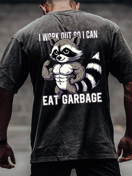 I workout so I can eat garbage raccoon back printed Washed Gym Shirt