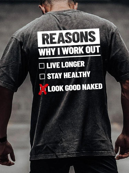 REASONS WHY I WORKOUT back printed Washed Gym Shirt