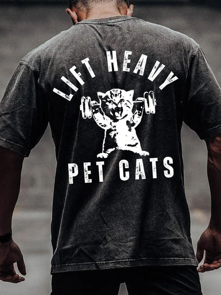 LIFT HEAVY PET CATS back printed Washed Gym Shirt