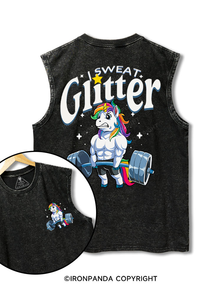 I Sweat Glitter printed Washed Gym tank