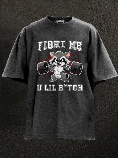 Fight Me U Lil Bitch Raccoon Washed Gym Shirt
