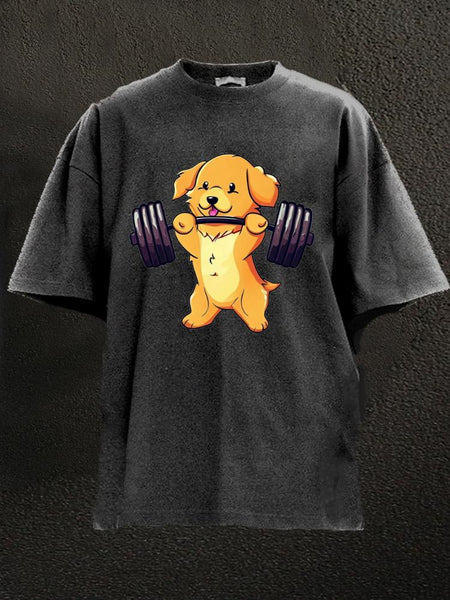 Golden Retriever Gym Weightlifting Washed Gym Shirt