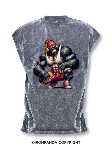 I'M NOT HERE TO TALK gorilla printed Washed Gym Shirt