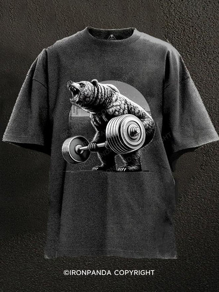 Deadlifting Bear Washed Gym Shirt
