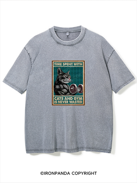 Time Spent with Cats and Gym Is Never Wasted Washed Gym Shirt