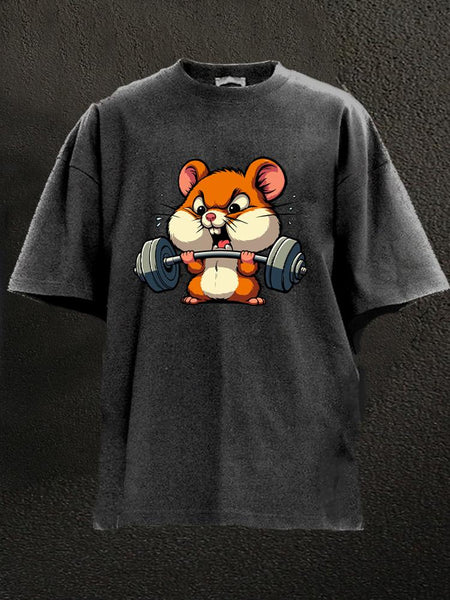 barbell weightlifting hamster Washed Gym Shirt