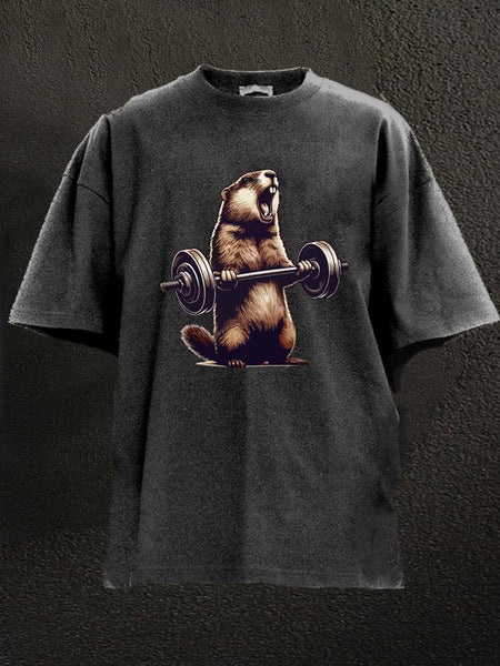 barbell wieghtlifting groundhog Washed Gym Shirt