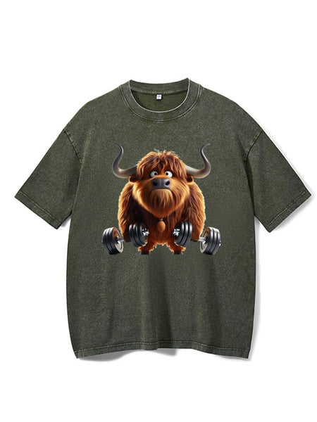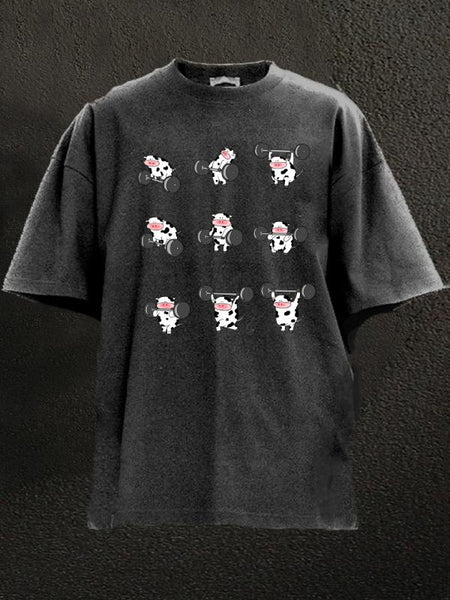 Ironpanda Lift Heavy Dairy Cow Washed Gym Shirt