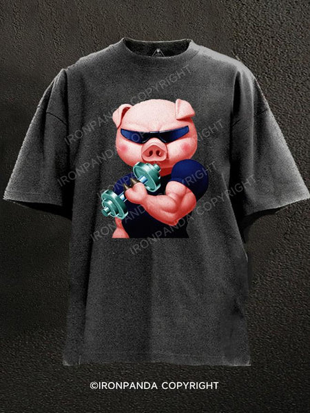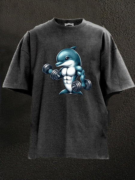 dumbbell weightlifting muscular dolphin Washed Gym Shirt