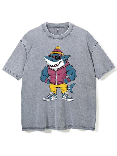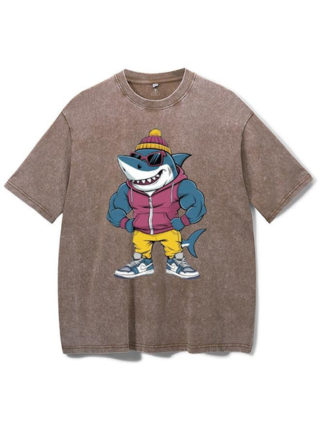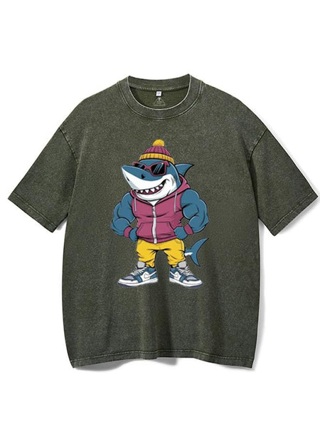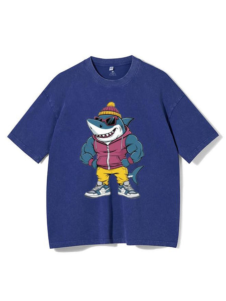 Muscular Shark Washed Gym Shirt