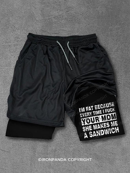 I'M FAT BECAUSE EVERY TIME I FUCK YOUR MOM SHE MAKES ME A SANDWICH Performance Training Shorts