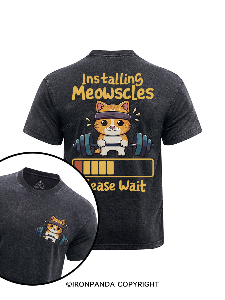 Installing Meowscles Please Wait cat printed Washed Gym Shirt