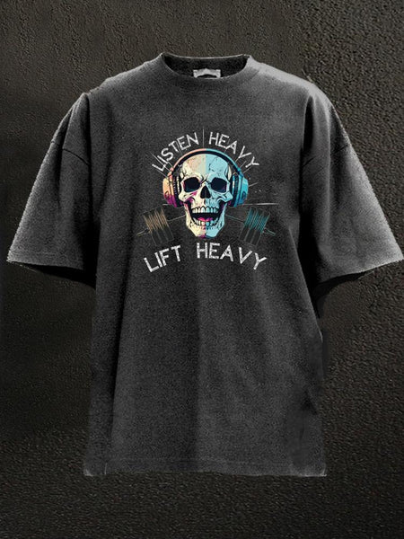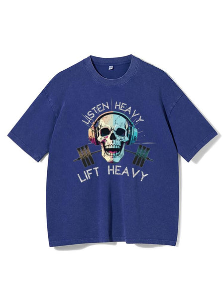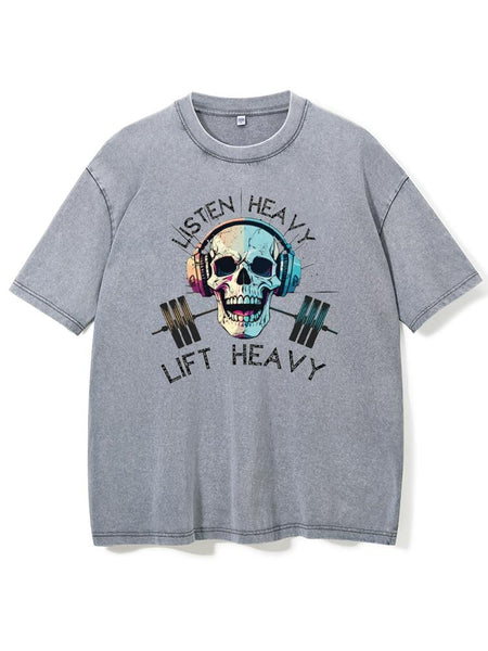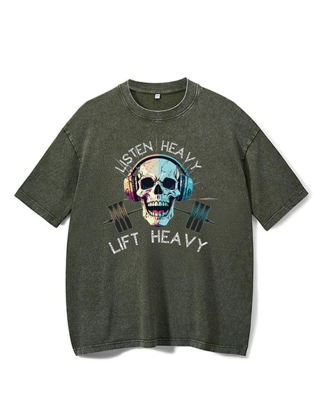 Listen Heavy Lift Heavy Skull Workout Washed Gym Shirt