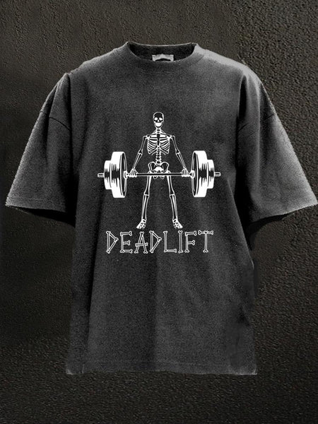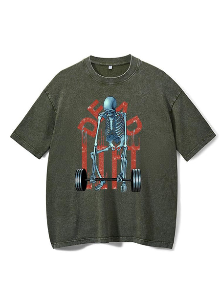 no lift no gift deadlift skeleton Washed Gym Shirt