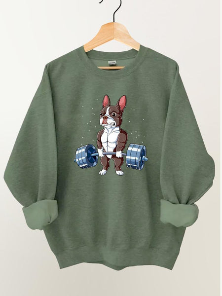 Weightlifting Brown Boston Terrier Vintage Gym Sweatshirt