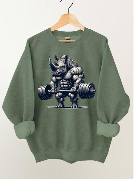 Barbell Weightlifting Rhino Gym Sweatshirt