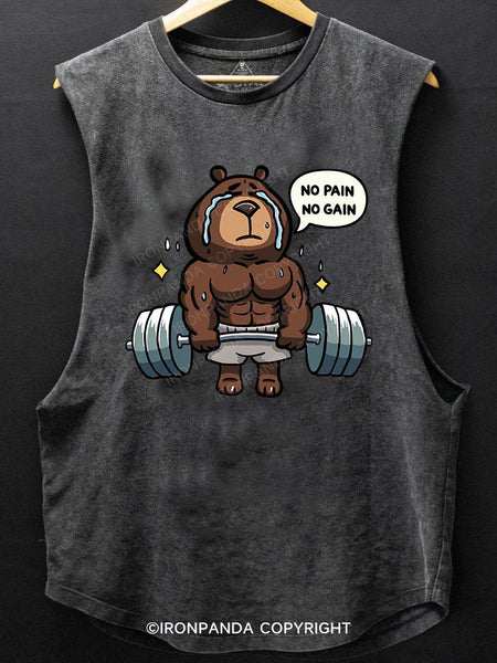 No Pain No Gain Weightlifting Bear SCOOP BOTTOM COTTON TANK