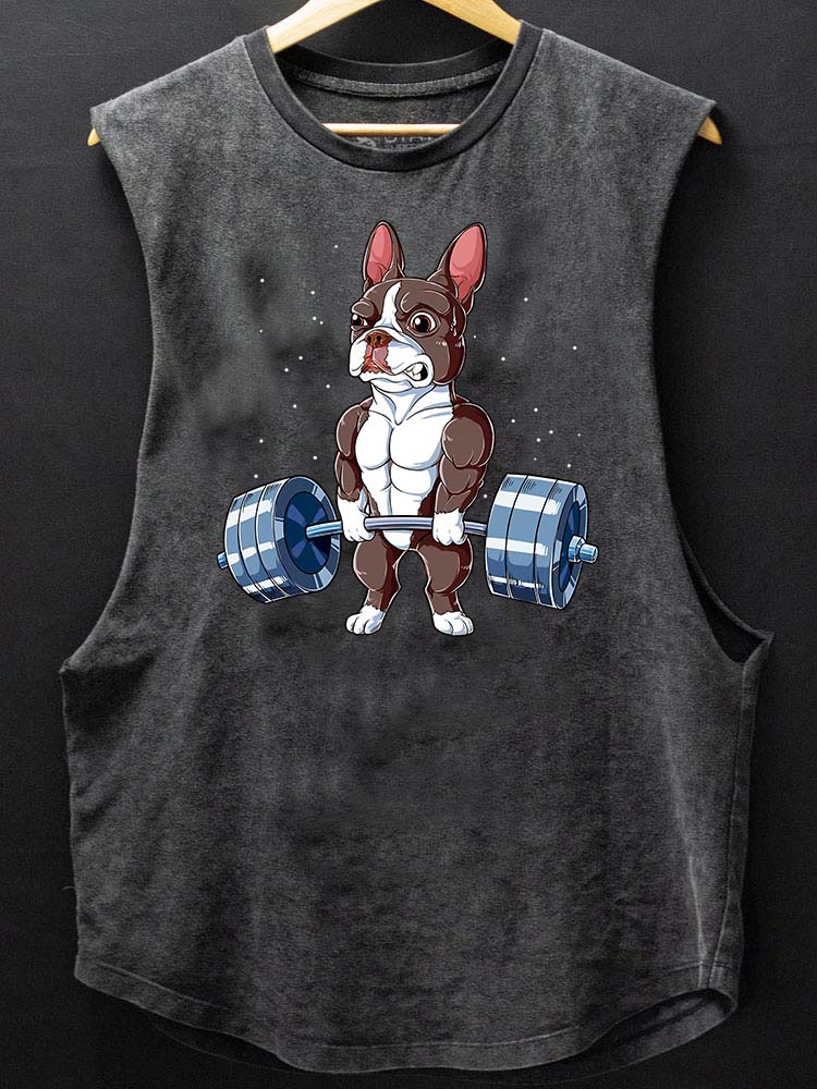 Weightlifting Brown Boston Terrier SCOOP BOTTOM COTTON TANK