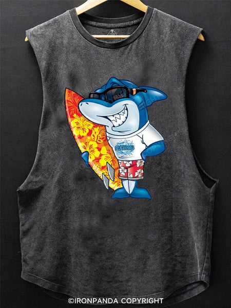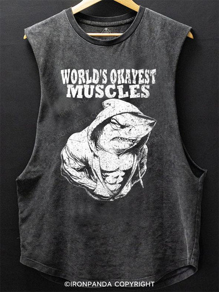 WORLD'S OKAYEST MUSCLES shark SCOOP BOTTOM COTTON TANK