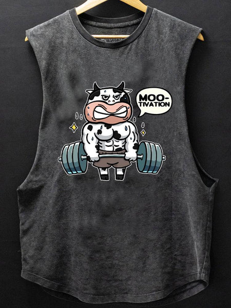 moo-tivation weightlifting cow SCOOP BOTTOM COTTON TANK
