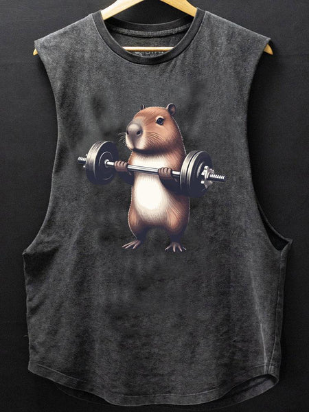 barbell weightlifting capybara SCOOP BOTTOM COTTON TANK