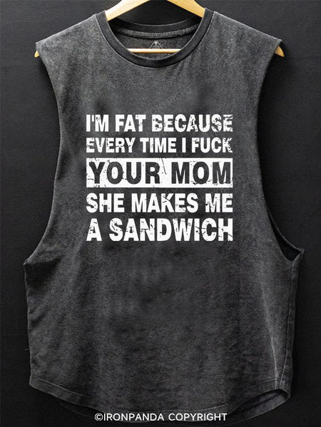 I'M FAT BECAUSE EVERY TIME I FUCK YOUR MOM SHE MAKES ME A SANDWICH SCOOP BOTTOM COTTON TANK