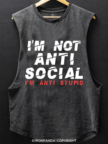 I'm not Anti Social I'm Anti Stupid SCOOP BOTTOM COTTON TANK