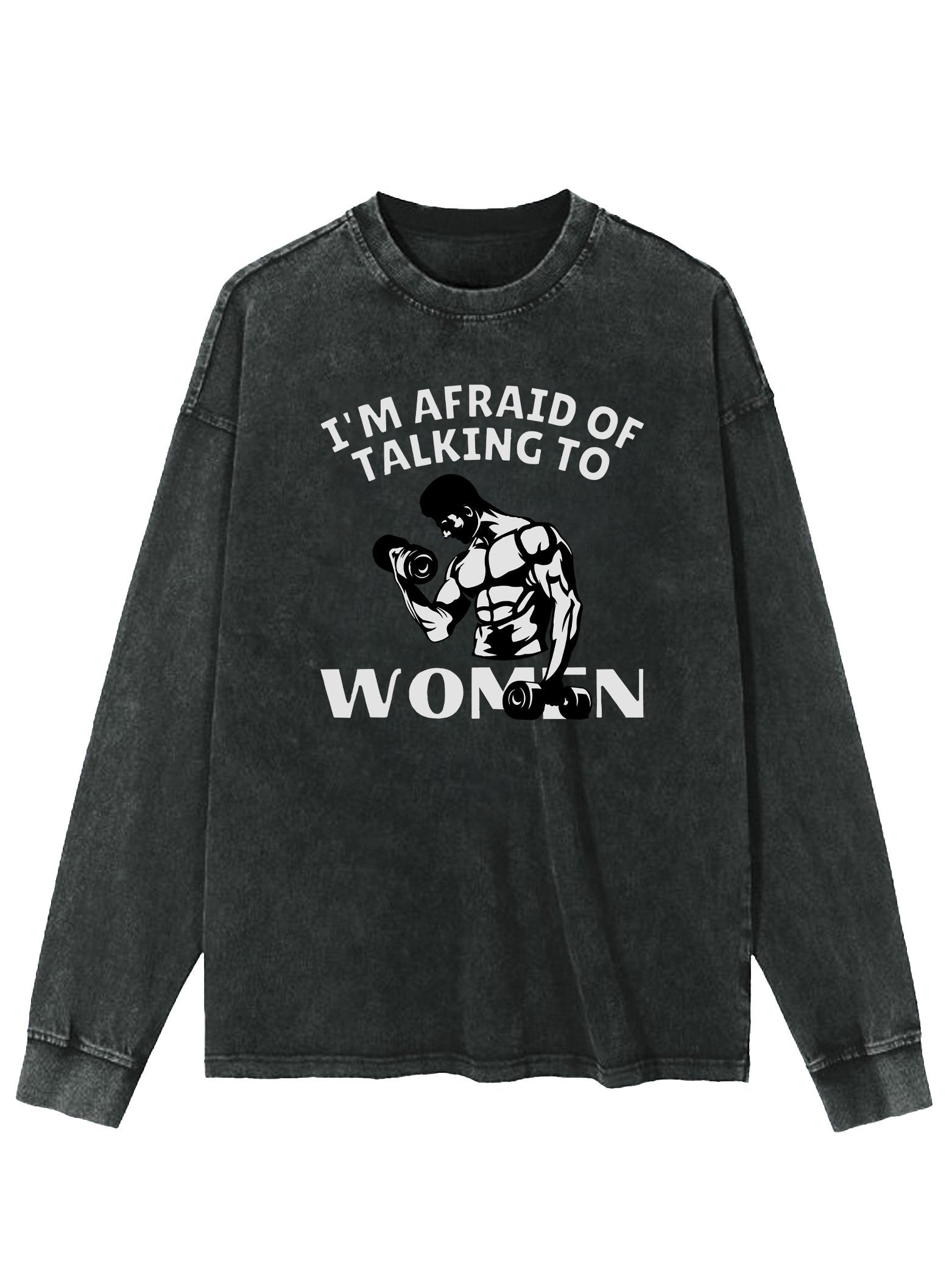 I'M AFRAID OF TALKING TO WOMEN WASHED LONG SLEEVE SHIRT
