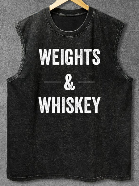 WEIGHTS AND WHISKEY Washed Gym Tank