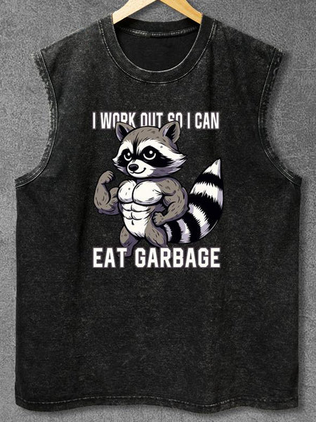 I WORKOUT SO I CAN EAT GARBAGE RACCOON Washed Gym Tank