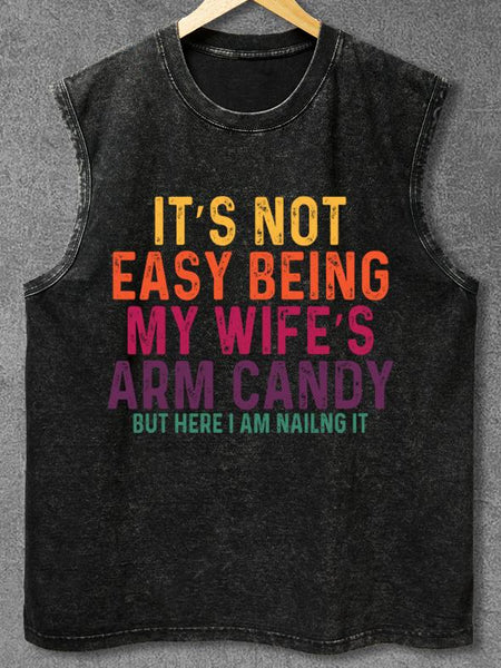 IT'S NOT EASY BEING MY WIFE'S ARM CANDY Washed Gym Tank