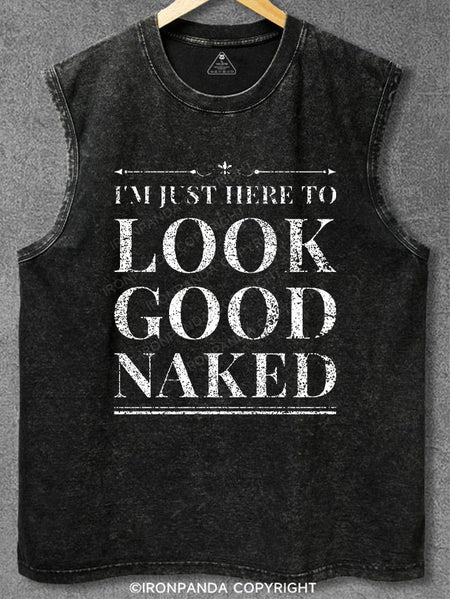 I'M JUST HERE TO LOOK GOOD NAKED Washed Gym Tank