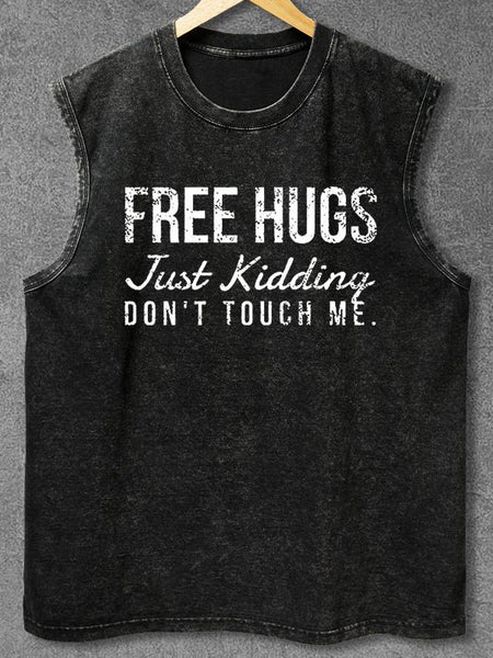 FREE HUGS JUST KIDDING DON'T TOUCH ME Washed Gym Tank