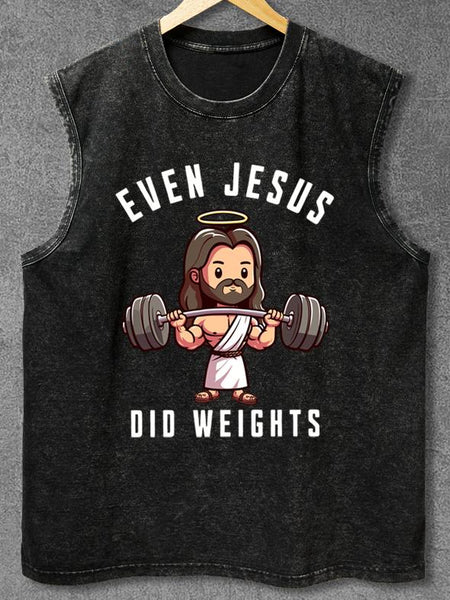 EVEN JESUS DID WEIGHTS Washed Gym Tank