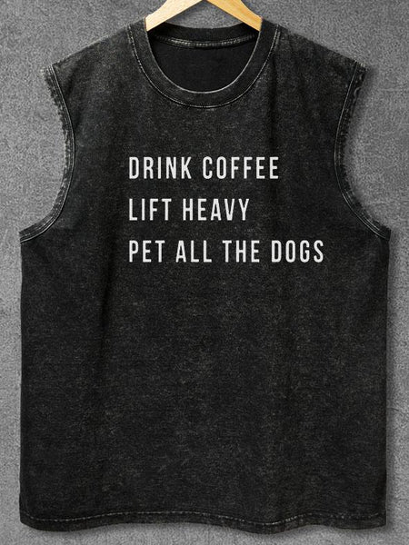 DRINK COFFEE LIFT HEAVY PET ALL THE DOGS Washed Gym Tank