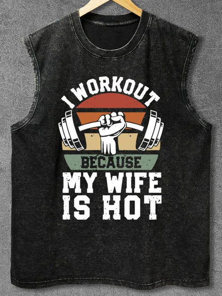 I WORKOUT BECAUSE MY WIFE IS HOT Washed Gym Tank
