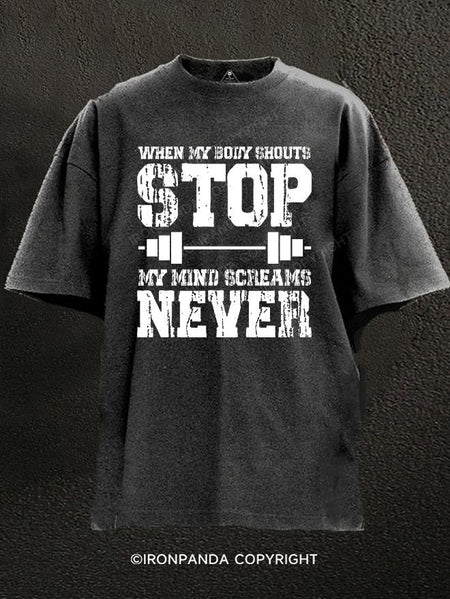 When my body shouts stop my mind screams never Washed Gym Shirt