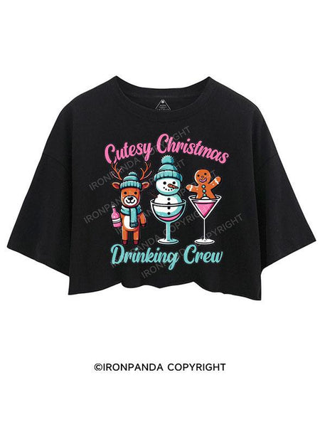 CUTESY CHRISTMAS DRINKING CREW CROP TOPS