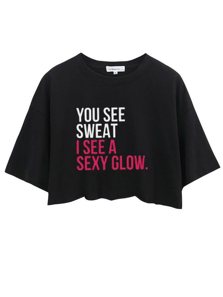 YOU SEE SWEAT I SEE A SEXY GLOW CROP TOPS