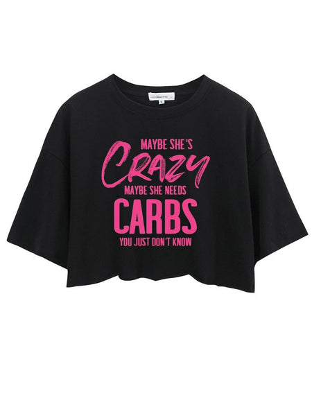 Maybe She's Crazy Maybe She Needs Carbs Crop Tops