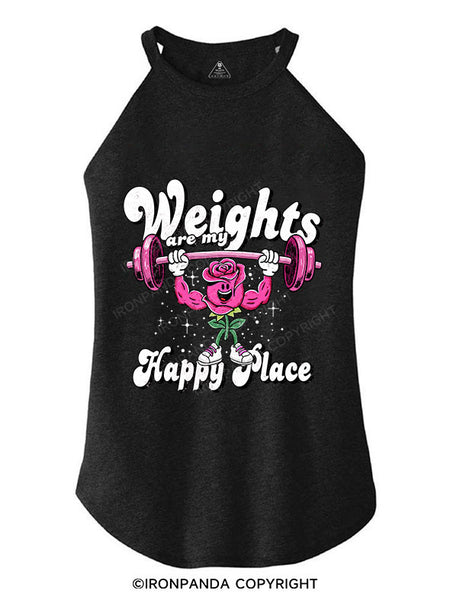 WEIGHTS ARE MY HAPPY PLACE TRI ROCKER COTTON TANK