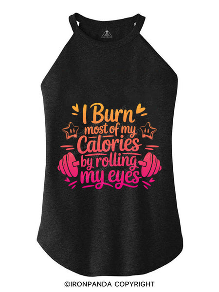I BURN MOST OF MY CALORIES BY ROLLING MY EYES TRI ROCKER COTTON TANK