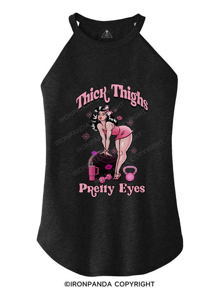 THICK THIGHS PRETTY EYES TRI ROCKER COTTON TANK