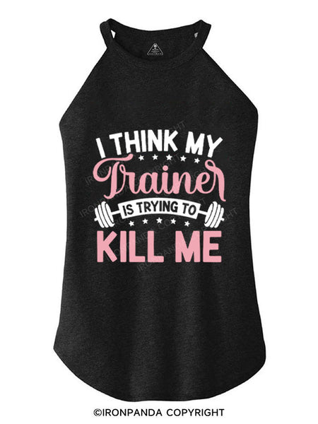 I THINK MY TRAINER IS TRYING TO KILL ME TRI ROCKER COTTON TANK