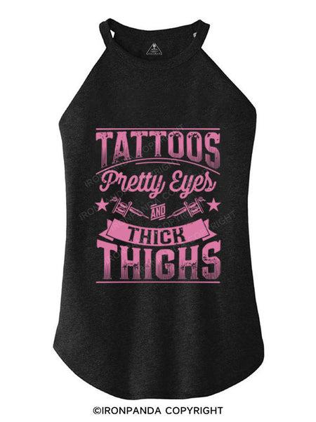 TATTOOS PRETTY EYES AND THICK THIGHS TRI ROCKER COTTON TANK